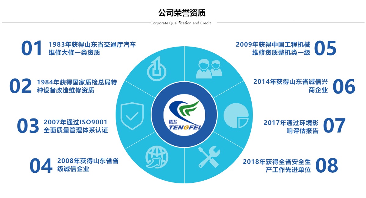 泰安騰飛工程機(jī)械有限公司,中聯(lián)重科山東維修中心,擁有自營(yíng)備件中心庫(kù)。坐落于泰山腳下,泰安市東部新區(qū),交通方便。公司是以工程機(jī)械維修,備件供應(yīng)、二手工程機(jī)械交易為主營(yíng)。是華北、華東地區(qū)工程機(jī)械維修規(guī)模較大、備件齊全、服務(wù)范圍廣的維修服務(wù)企業(yè)。中聯(lián)重科全系列汽車起重機(jī)售后服務(wù)維修,承接國(guó)內(nèi)外汽車起重機(jī)、挖掘機(jī)、裝載機(jī)、叉車、道路救援服務(wù)等各種工程機(jī)械修理、保養(yǎng),中聯(lián)重科山東備件中心庫(kù)、徐工、三一、泰安起重機(jī)全車配件。同時(shí)是濰柴、上柴、法士特變速箱、漢德車橋的服務(wù)站和備件經(jīng)銷商,是人保、太平洋、中華聯(lián)合、平安等保險(xiǎn)公司戰(zhàn)略合作拆解定損維修中心。公司占地30畝,辦公區(qū)2000平方米,維修車間8000平方米。試車坪6000平方米。備件庫(kù)面積2000平方米。員工120余人,技術(shù)人員80余人,工程師4名。山東省交通廳一類大型汽車維修資質(zhì)、中國(guó)工程機(jī)械維修整機(jī)類一級(jí)資質(zhì),并通過ISO9001質(zhì)量管理體系認(rèn)證。公司由中國(guó)工程起重機(jī)泰...
